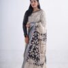 Paired with a black blouse, this saree captures the essence of traditional craftsmanship while maintaining a modern, graceful charm.