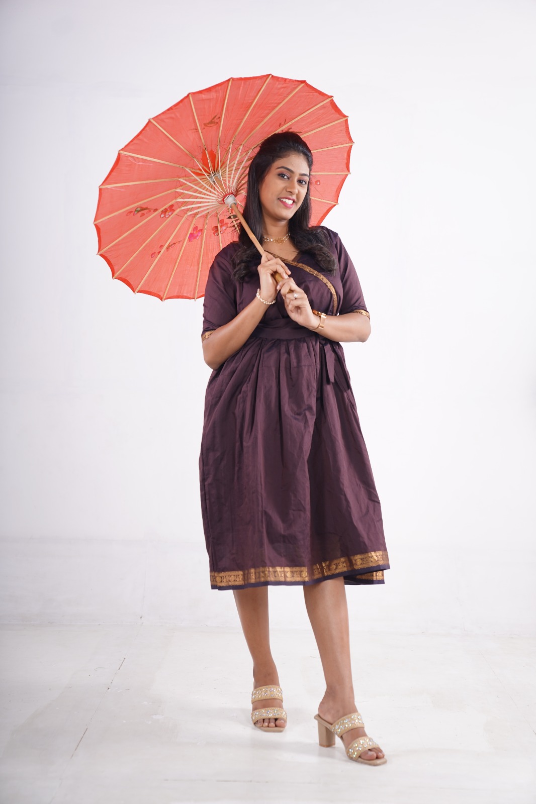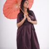 Turn heads with this elegant wine-hued silk cotton dress, designed for comfort and sophistication.